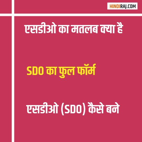 यदि आप एसडीओ बनने में रुचि रखते है, तो उसके लिए आपको सही दिशा में तैयारी करने की जरूरत होती है | इस लेख में आपको एसडीओ (SDO) का मतलब क्या है, और SDO का फुल फॉर्म क्या होता है, तथा एसडीओ (SDO) कैसे बने इसके बारे में महत्वपूर्ण जानकारी दी जा रही है |