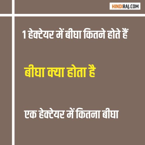 - यदि आपका कच्चा बीघा है, तो यह उत्तर बदलकर 1 हेक्टेयर मैं 8 बीघा हो जायेगा, क्योंकि कच्चा बीघा में 10 बिस्वा होते हैं |
