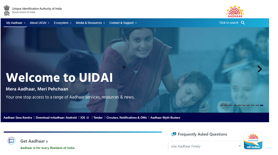 - सर्वप्रथम आपको UIDAI की आधिकारिक वेबसाइट uidai.gov.in/ पर जाना होगा |