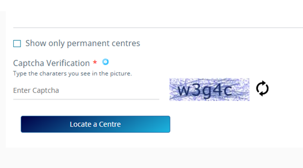 - अब “Captcha” भरकर “Locate a Center” पर क्लिक कर दें |