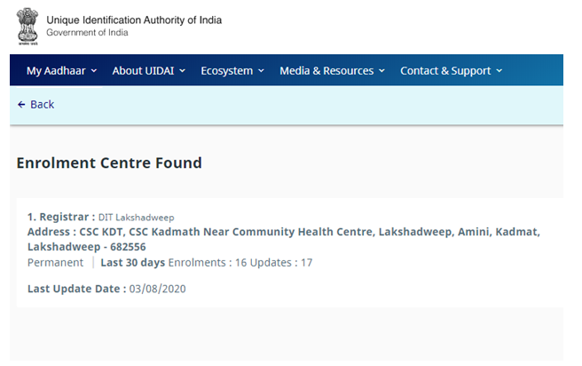- अब आपके सामने आधार कार्ड एनरोलमेंट सेन्टर और अपॉइंटमेंट की तारीख खुलकर आ जाएगी |