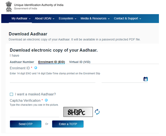 - अब डाउनलोड “E Aadhar” पर क्लिक करना होगा |