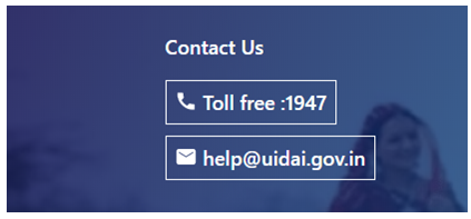 आधार कार्ड से संबंधित जानकारी या किसी अन्य समस्या के लिए एक टोल फ्री हेल्पलाइन नम्बर भी जारी किया गया है, वह नम्बर 1947 है | इस पर कॉल करने से आपकी समस्या का समाधान हो जायेगा | इसके अलावा यदि आप अपनी समस्या की जानकारी लिखित में देना चाहते है तो आपको emailhelp@uidai.gov.in पर ई मेल करना होगा |