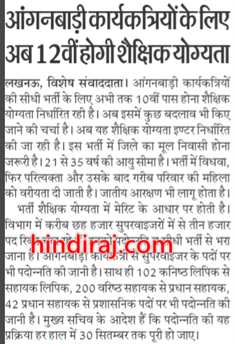 - वहीँ आंगनबाड़ी सहायिका पद के लिए न्यूनतम 5वी पास होना अनिवार्य है |
