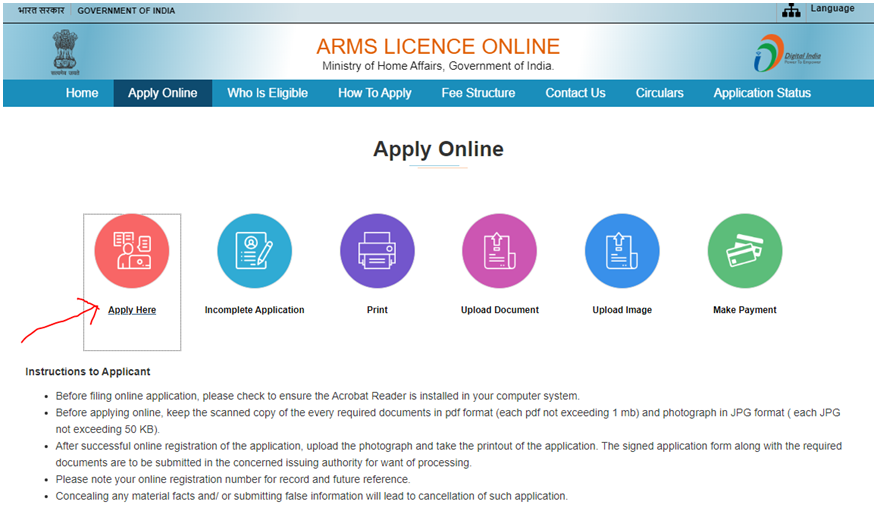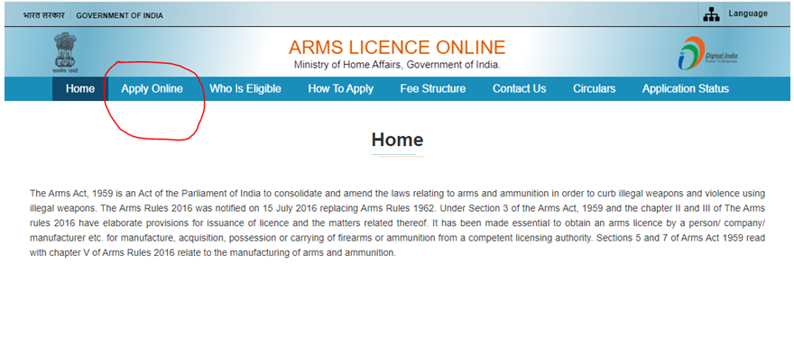शस्त्र लाइसेंस के लिए ऑनलाइन आवेदन | Arms License Registration