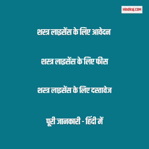 यहाँ पर आपको शस्त्र लाइसेंस के आवेदन के विषय में जानकारी दी गई है | यदि इस जानकारी से संतुष्ट है, या फिर इससे समबन्धित अन्य जानकारी प्राप्त करना चाहते है तो कमेंट करके अपना सुझाव दे सकते है, आपकी प्रतिक्रिया का जल्द ही उत्तर देने का प्रयास किया जायेगा | अधिक जानकारी के लिए hindiraj.com पोर्टल पर विजिट करते रहे |