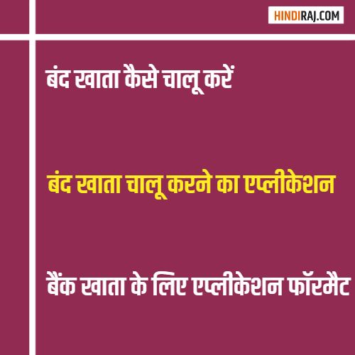 इसलिए अगर आपका भी बैंक अकाउंट किन्ही कारणों से बंद हो गया है और आप फिर से अपने बैंक अकाउंट को एक्टिवेट करना चाहते हैं परंतु आपको बैंक अकाउंट चालू करवाने का तरीका पता नहीं है तो इस आर्टिकल में हम आपको बैंक अकाउंट चालू करने के लिए एप्लीकेशन कैसे लिखी जाती है, इसकी जानकारी दे रहे हैं।