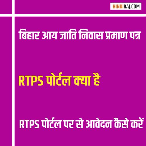 बिहार सरकार द्वारा नागरिकों की सहायता के लिए बहुत सारी सेवाएं प्रदान की जा रही हैं। इन्हीं सेवाओं को ध्यान में रखते हुए बिहार सरकार द्वारा RTPS पोर्टल को लांच किया गया है जिससे राज्य के निवासी आय, जाति और निवास प्रमाण पत्र जैसे जरूरी दस्तावेज़ ऑनलाइन ही बनवा सकते हैं।