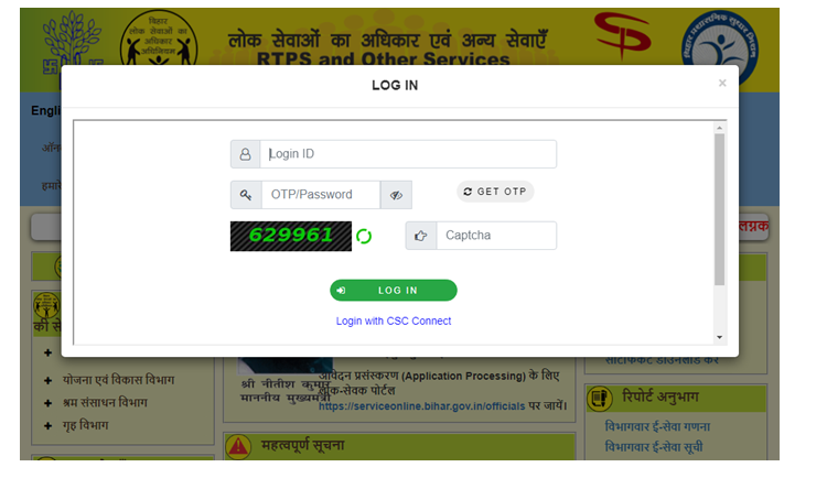 • सबसे पहले अपने मोबाईल या कंप्यूटर के ब्राउज़र में बिहार राज्य के RTPS पोर्टल की अधिकारित वेबसाइट पर जाएं। इसके लिए आप इस लिंक पर भी क्लिक कर सकते हैं – क्लिक करें