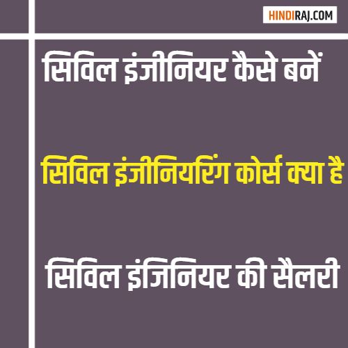 जो अभ्यर्थी सिविल इंजीनियरिंग से संबंधित किसी भी प्रकार की डिग्री को हासिल कर लेता है उसे सिविल इंजीनियर कहा जाता है, कंस्ट्रक्शन से संबंधित कामों को देखना या फिर करवाना सिविल इंजीनियर का प्रमुख कार्य होता है। वे सड़क, इमारत, पुल बांध इत्यादि ना सिर्फ इन सभी चीजों का निर्माण करवाने में सहायक साबित होते हैं, बल्कि यह इनके रखरखाव को भी सुनिश्चित करते हैं।