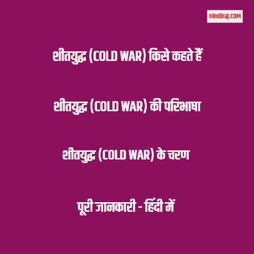 यहाँ आपको शीतयुद्ध (Cold War) के विषय में जानकारी दी गई है | यदि आप इस जानकारी से संतुष्ट है, या फिर इससे सम्बन्ध में अन्य किसी जानकारी को प्राप्त करना चाहते है तो कमेंट करके अपना सुझाव दे सकते है, आपकी प्रतिक्रिया का जल्द ही उत्तर दिया जायेगा | अधिक जानकारी के लिए hindiraj.com पोर्टल पर विजिट करते रहे |