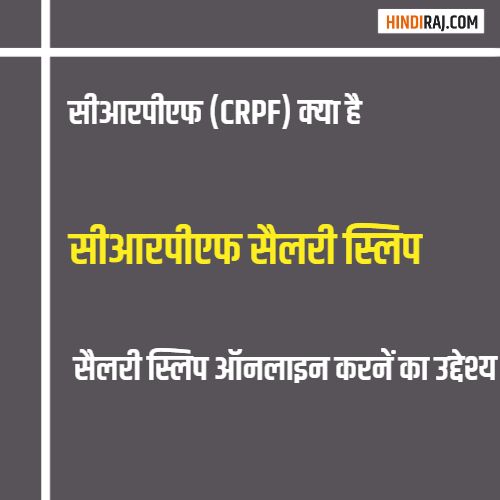 केंद्रीय रिजर्व पुलिस अर्थात सीआरपीएफ भारत सरकार के गृह मंत्रालय अंतर्गत कार्य करनें वाला एक अर्धसैनिक बल है | सीआरपीएफ (CRPF) का मुख्य कार्य राज्यों और केंद्र शासित प्रदेशों में कानून व्यवस्था बनाये रखनें के साथ ही आतंकवादी गतिविधियों को रोकना है | हमारे देश की सुरक्षा के लिए जान की बाजी लगानें वाले सीआरपीएफ (CRPF) जवानों की सुविधा के लिए सरकार नें सैलरी पे स्लिप (Salary Slip) ऑनलाइन देखनें की सुविधा प्रदान की है |