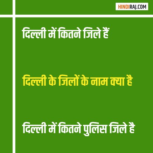 नीचे आपके समक्ष हमने दिल्ली के कुल 11 जिलों के नाम बताए हुए हैं।