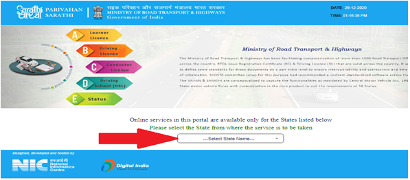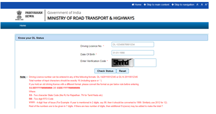 ड्राइविंग लाइसेंस स्टेटस चेक करनें की प्रक्रिया (Procedure for Checking Driving License Status)