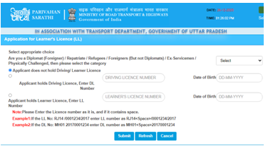 - अब आपको Apply Learners Licence पर क्लिक करना है |