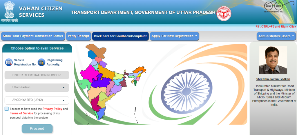 - क्लिक करने के बाद आपकी स्क्रीन पर एक नया पेज खुल जाएगा। जिसमें आपको अपना ट्रांसफर रजिस्ट्रेशन नंबर दर्ज कर RTO सिलेक्ट कर Proceed के विकल्प पर क्लिक कर देना होगा।
