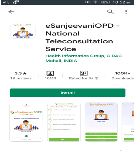 • ई संजीवनी ओपीडी एप डाउनलोड करने के लिए आप अपने एंड्रायड फ़ोन में गूगल के प्ले स्टोर में जाकर e Sanjeevani OPD Mobile App लिंक के द्वारा डाउनलोड कर सकते है |
