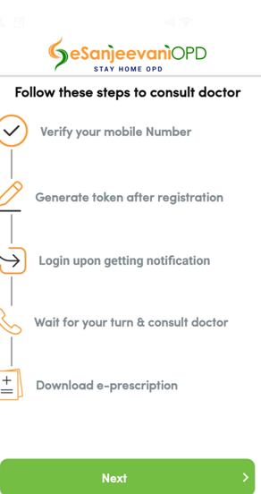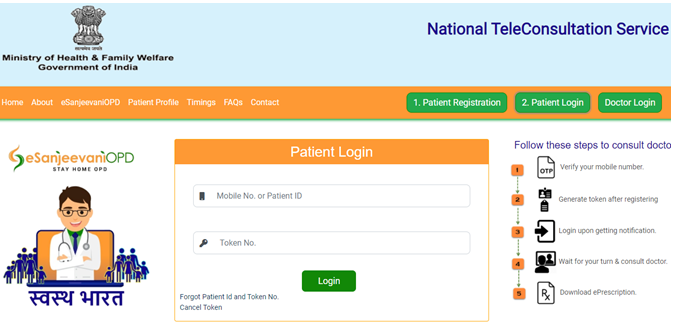 • ई-संजीवनी ओपीडी पंजीकरण करने पर आपको टोकन तथा लॉगिन आईडी प्राप्त हो जाएगी |