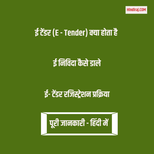 यहाँ आपको ई टेंडर (E – Tender) के बारे में जानकारी उपलब्ध कराई गई है | यदि आप इससे सम्बंधित अन्य जानकारी पाना चाहते है, तो आप www.hindiraj.com पर विजिट करते रहे | इसके साथ अपने विचार या सुझाव अथवा प्रश्न कमेंट बॉक्स के माध्यम से पूंछ सकते है |