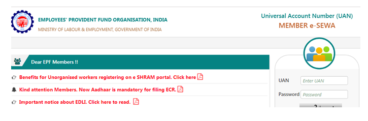 - अब रीडायरेक्ट होकर आपके सामनें एक नया वेबपेज ओपन होगा, यहाँ आपको अपने यूएएन, पासवर्ड और कैप्चा कोड का उपयोग करके पोर्टल में लॉग इन करें।