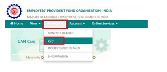- अब आपको Manage टैब के अन्दर KYC पर क्लिक करना होगा |
