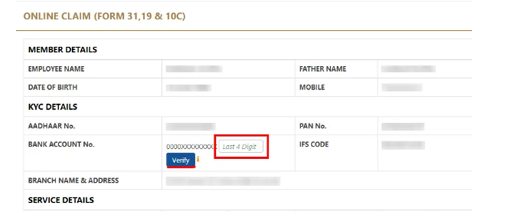 - अब आप एक नए वेबपेज पर रीडायरेक्ट कर दिया जाएगा, यहाँ आपको अपने पंजीकृत बैंक खाता संख्या के अंतिम 4 अंक दर्ज करउसे सत्यापित करना होगा।
