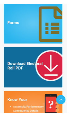 - होम पेज पर पहुंचने के पश्चात आपको स्क्रोल डाउन कर के नीचे आना है। नीचे आने पर आपको बड़े-बड़े बैनर में जो पांचवें नंबर का बैनर दिखाई दे रहा है इस पर क्लिक कर देना है। यह बैनर Download Electoral Roll PDF का होगा।