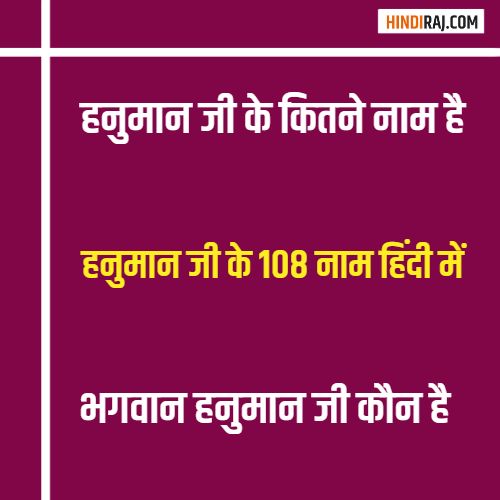 हनुमान जी के नाम: हनुमान जी ही एक ऐसे देवता हैं जो कलयुग में भी जागृत हैं और इसीलिए कहा जाता है कि जो सच्चे मन से हनुमान जी की सेवा करता है और उन पर विश्वास रखता है, हनुमान जी उसकी सभी प्रकार से रक्षा करते हैं।