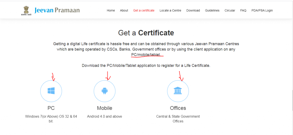 वर्तमान में डिजिटल जीवन प्रमाण-पत्र (Life Certificate for Pensioners) बनवाने की प्रक्रिया बिल्कुल आसान है। आप अपने शहर में सीएससी (CSC), बैंक (BANK) एवं सरकारी कार्यालयों द्वारा संचालित विभिन्न जीवन प्रमाण केन्द्रों- बाहरी वेबसाइट जो एक नई विंडो में खुलती है इसके अलावा किसी भी कंप्यूटर / मोबाइल / टेबलेट पर उपलब्ध एप्लीकेशन के माध्यम से अपना डिजिटल जीवन प्रमाण-पत्र प्राप्त कर पाएंगे। इसके अलावा आप स्वयं jeevanpramaan.gov.in पोर्टल पर जाकर बनवा सकते है या फिर जानकारी एकत्रित कर सकते है |