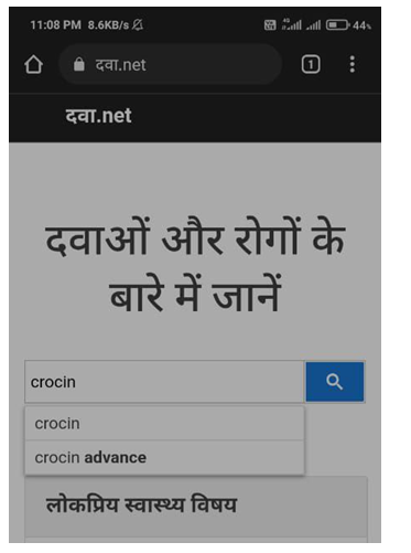 - इसमें आपको एक सर्च बॉक्स दिखेगा जिसमें आपको उस दवा का नाम लिखना है जिसके बारे में आप जानना चाहते हैं।
