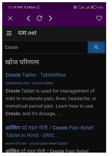 - आपके सामने अब आपके सर्च की गई दवाओं से संबंधित कई परिणाम आ चुके होंगे।