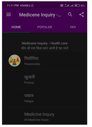 - यहां पर आपके सामने एप का होमपेज खुल जाएगा जिसमें कई दवाओं के बारे में जानकारी शामिल होगी।
