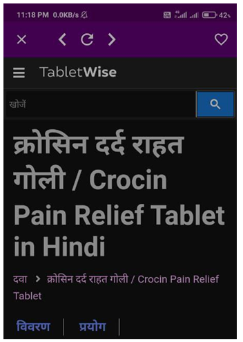 - अब एक नया पेज ओपन होगा जिसमें दवा के बारे में सभी प्रकार की जानकारी उपलब्ध होगी।