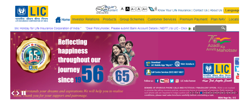 - एलआईसी पॉलिसी पर लोन लेने के लिए आपको सबसे पहले LIC की आधिकारिक वेबसाइट https://licindia.in पर जाना होगा |