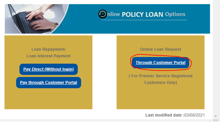 - अब आपके सामनें एक नया पेज ओपन होगा, यहाँ आपको 3 आप्शन दिखयी देंगे | इनमें से आपको Online Loan Request “Through Customer Portal” आप्शन पर क्लिक करना होगा |