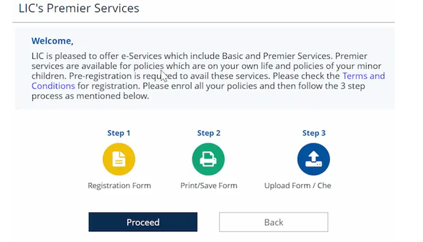 - इसके साथ ही आप को “LIC Premier Services” के लिए भी रजिस्टर करना होगा |