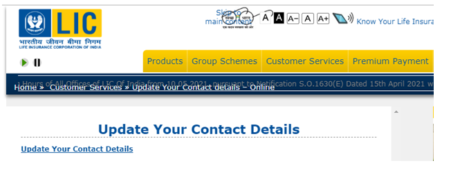 LIC Policy में आप घर बैठे कई प्रकार के बदलाव कर सकते है जैसे Update Pan Card, Change Address. LIC में Contact Update करने के लिए निम् चरणों को फॉलो करे :-
