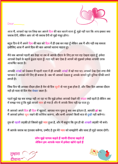 लव लेटर फार्मेट इन हिंदी (Love Letter Format in Hindi PDF)