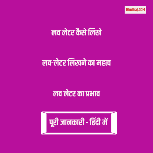 यहाँ आपको Love Letter Kaise Likhe | Love Letter Format (Sample) in Hindi & English इसके विषय में जानकारी उपलब्ध कराई जा रही है | यदि आप इस जानकारी से संतुष्ट है, या फिर इससे समबन्धित अन्य जानकारी प्राप्त करना चाहते है तो कमेंट के माध्यम से अपना सुझाव दे सकते है, आपकी प्रतिक्रिया का जल्द ही उत्तर दिया जायेगा | अधिक जानकारी के लिए hindiraj.com पोर्टल पर विजिट करते रहे |