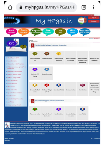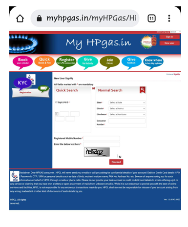 - ब्राउज़र में आपको www.MyLPG.in पर जाना है।