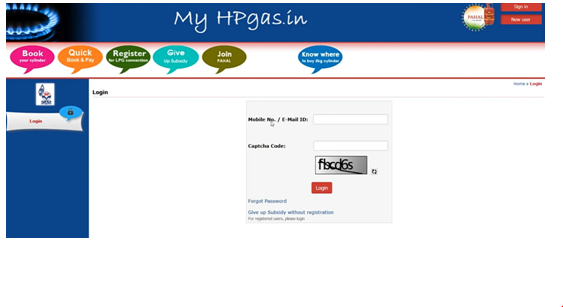 - आप भारत गैस/एचपी गैस के होम पेज पर आ जायेंगे।