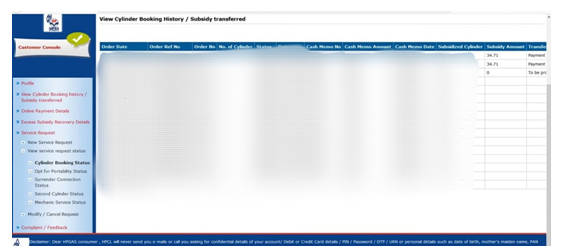 - आपको एलपीजी सिलेंडर के लिए सब्सिडी का कितना अमाउंट किस तारीख को मिला, किस बैंक खाते में मिला इस प्रकार की सारी जानकारी आपको इस पेज पर मिल जायेगी।