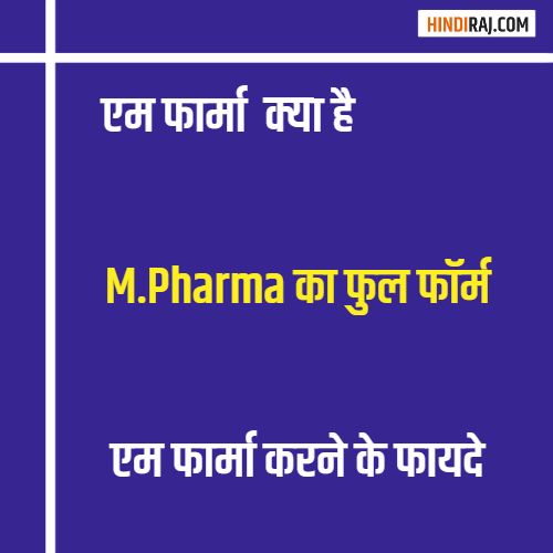 मुख्य रूप से एम फार्मा का फुल फॉर्म “Master of Pharmacy” मास्टर आफ फार्मेसी है।