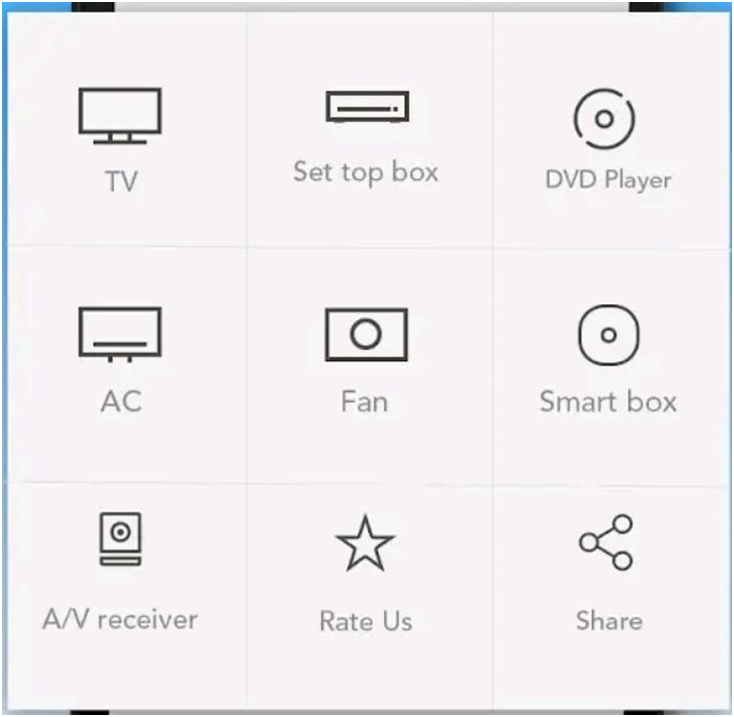 - फिर आपको ऐप को Open कर लेना हैं , जिसमें बहुत सारे ऑप्शन देखने को मिलेंगें। जैसे TV, AC इत्यादि।