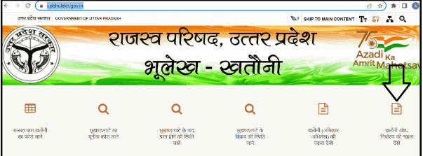 यूपी के जमीन मालिकों को मोबाइल पर जमीन की जानकारी देखने के लिए राजस्व विभाग उत्तर प्रदेश की आधिकारिक वेबसाइट पर जाना होगा। होम पेज पर, “खतौनी की नकल देखें” (अधिकार अभिलेख की नकल) का विकल्प का चयन करना है। फिर आपको कैप्चा कोड दर्ज करना है।