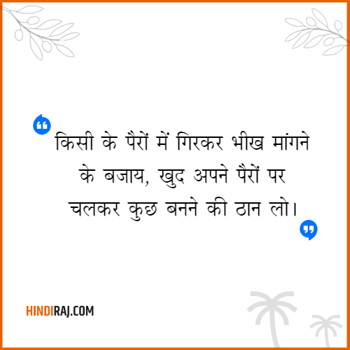 21. किसी के पैरों में गिरकर भीख मांगने के बजाय, खुद अपने पैरों पर चलकर कुछ बनने की ठान लो।