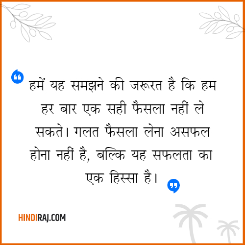 16. हमें यह समझने की जरूरत है कि हम हर बार एक सही फैसला नहीं ले सकते। गलत फैसला लेना असफल होना नहीं है, बल्कि यह सफलता का एक हिस्सा है।