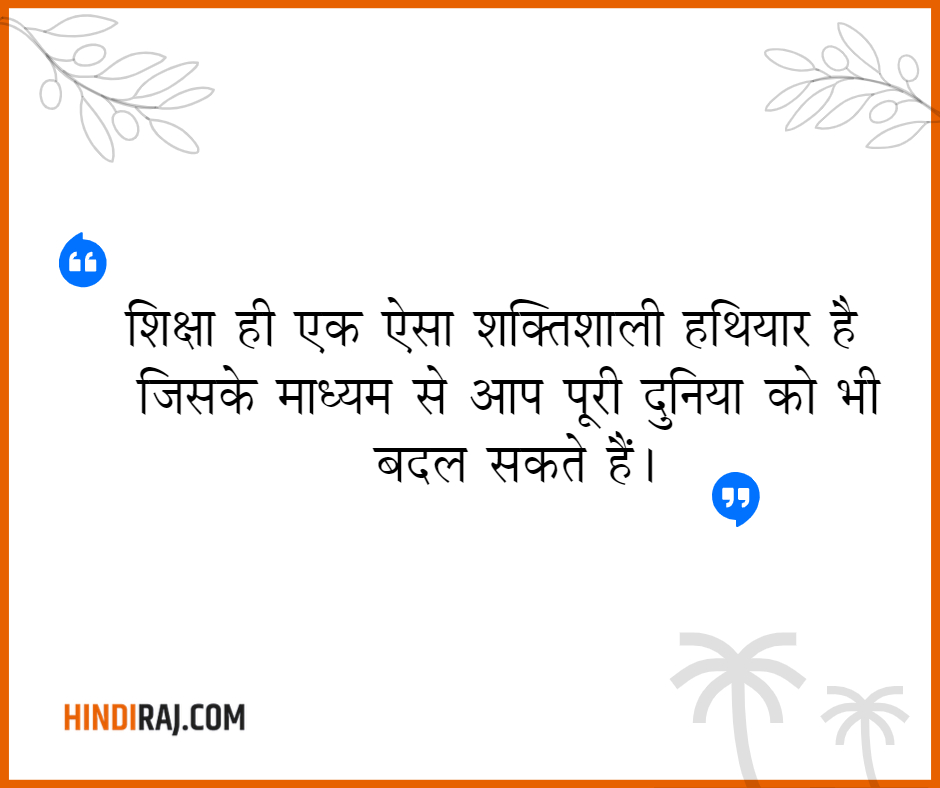 2. शिक्षा ही एक ऐसा शक्तिशाली हथियार है जिसके माध्यम से आप पूरी दुनिया को भी बदल सकते हैं।