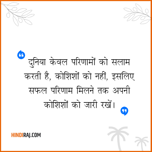 22. दुनिया केवल परिणामों को सलाम करती है, कोशिशों को नहीं, इसलिए सफल परिणाम मिलने तक अपनी कोशिशों को जारी रखें।