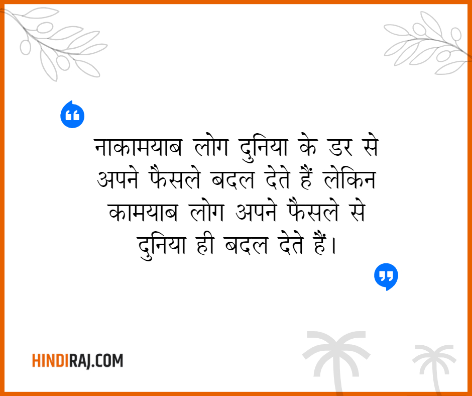 8. नाकामयाब लोग दुनिया के डर से अपने फैसले बदल देते हैं लेकिन कामयाब लोग अपने फैसले से दुनिया ही बदल देते हैं।
